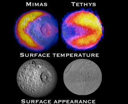 Η "θερμική ανωμαλία" στον δορυφόρο καταγράφηκε με το υπέρυθρο φασματόμετρο του Cassini, το οποίο μελετά το σύστημα του Κρόνου από το 2004. Οι θερμότερες περιοχές του δορυφόρου έχουν θερμοκρασία -183 βαθμούς Κελσίου, ενώ οι πιο ψυχρές, όπως το άνοιγμα του «στόματος» του Pac-Man, είναι 15 βαθμούς ψυχρότερες.