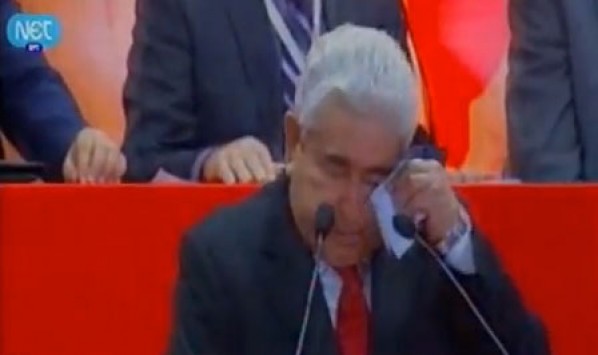 Δεν μπορούσε να συγκρατήσει τα δάκρυά του ο Πρόεδρος της Κυπριακής Δημοκρατίας, Δημήτρης Χριστόφιας όταν έκανε αναφορά στο Μνημόνιο.