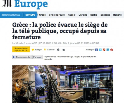 "Η ελληνική αστυνομία εκκενώνει την υπό κατάληψη τηλεόραση" γράφει το Al Jazeera