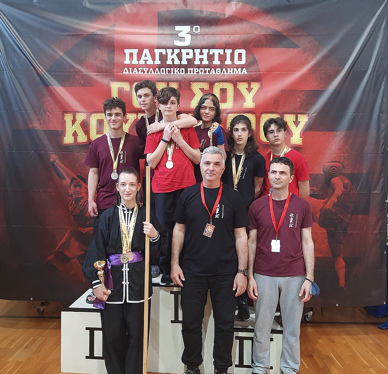 Το ΔΣ ευχαριστεί επίσης τον προπονητή κ. Μάνο Ταμιωλάκη, ο οποίος -μαζί με τους άλλους τέσσερις προπονητές που ξεκίνησαν το θεσμό του Παγκρήτιου Πρωταθλήματος- τιμήθηκε από την Ομοσπονδία ΓΟΥΣΟΥ-ΚΟΥΝΓΚ ΦΟΥ για τη συμβολή του στο άθλημα. Θερμές ευχαριστίες και στο Βοηθό Προπονητή κ. Αλέξη Σαπουντζάκη, καθώς και στην αθλήτριά μας κα. Λαμπρινή Ξηρουχάκη για την καθοδήγηση και την υποστήριξη των υπολοίπων αθλητών μας.